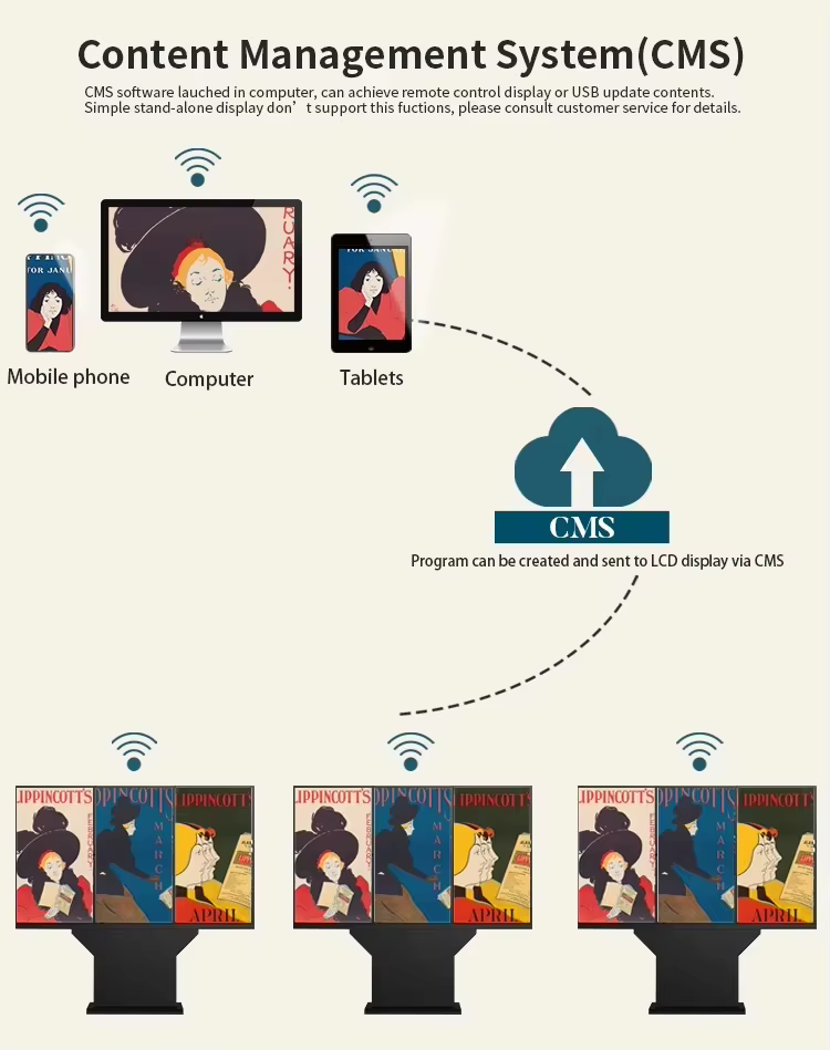 Za pešce in vozila na cesti je predlagano 75-palčno večjo promocijo oglaševanja v veliki velikosti 4K. Hkrati lahko zagotovi dnevno poizvedbo o zemljevidu in informacijah